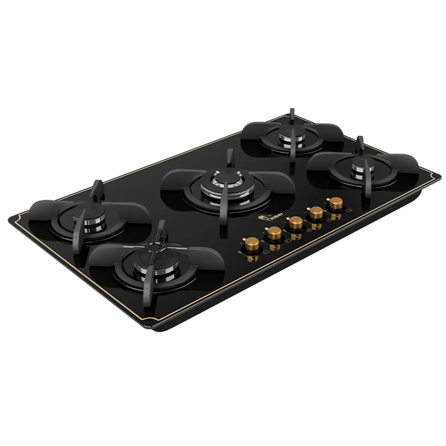 - طراحی شیشهای شیک و مینیمال: صفحه این اجاق گاز از جنس شیشه سکوریت (Tempered Glass) مشکی رنگ و مقاوم به حرارت و ضربه ساخته شده است. این طراحی نه تنها ظاهری شیک و مدرن به آشپزخانه شما میبخشد، بلکه با بازتاب نور، فضای آشپزخانه را دلبازتر و امروزیتر نشان میدهد.