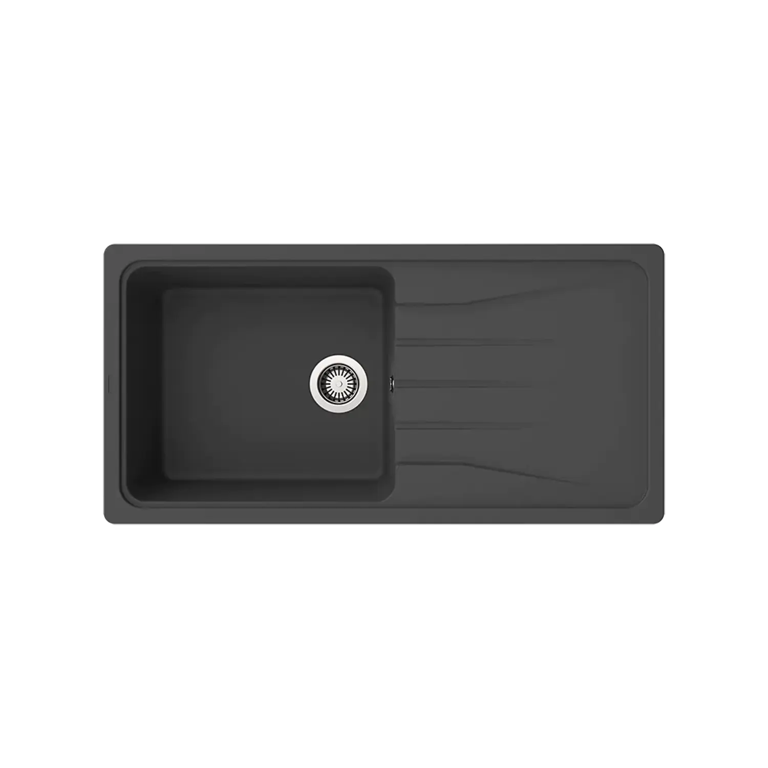 جنس سینک: گرانیت . این متریال ترکیبی از پودر سنگ گرانیت طبیعی و رزینهای آکریلیک است که مقاومت بالایی در برابر عوامل محیطی آشپزخانه دارد.